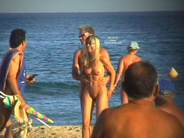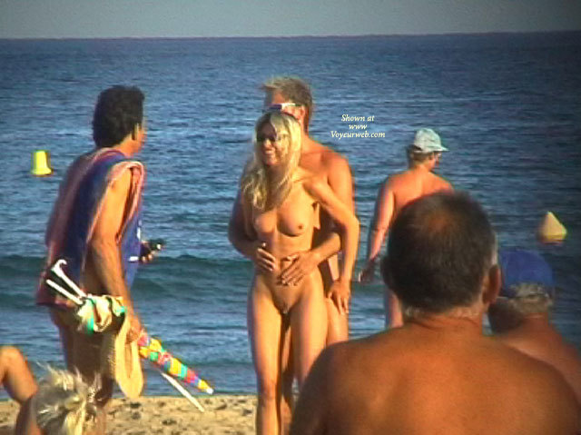 Dear viewers, as some of you have noticed, I took a few days off. But now I am back. With a big stock of hot pictures. I saw this couple at the beach in Cap d'Agde, the paradise of the nudists in the south of France. While they were talking to other sunbathers, he could not stop touching his girl and making her hot. An action what is very common at this very special beach... As always: Have fun! Superzoom